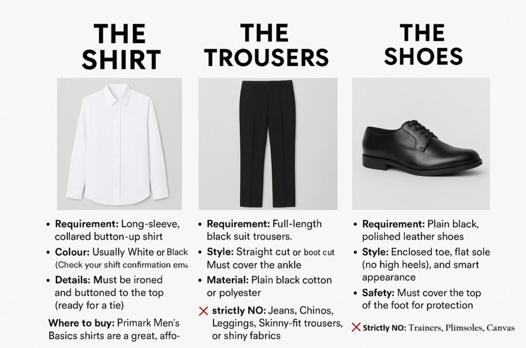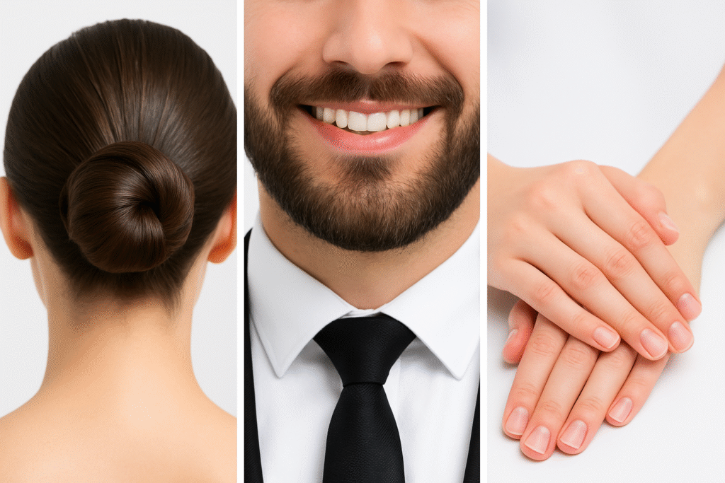 Hair: Clean and tidy. Long hair must be tied back in a bun.
